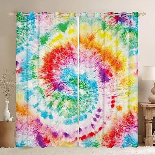 Amazon Com Feelyou Tie Dye Curtains For Bedroom Boho Psychedelic Swirl Girls Rainbow Pattern Curtain Hippie Trippy Window Drapes Bohemian Gypsy Curtains 38w X 45l Inches Set Of 2 Panels Colorful Home